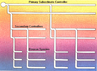 The Vedas elaborately describe a complex process of evolution proceeding from subtle designs to the physical manifestation of these designs in matter. According to this account, the universal controller directly generates a primary subordinate controller who generates secondary controllers by an asexual process. These secondary controllers have the capacity for sexual reproduction. not only to generate their own kind but also to generate other species. They contain within their bodies design information for varieties of organisms. This information, which exists in seedlike subtle forms, originates in the intelligence of the universal controller, who transmits it to the subordinate controllers (demigods). Finally the lesser controllers manifest this design information in the forms of varieties of species, which go on to reproduce themselves. The Vedas, written thousands of years before Darwin's time, thus contain the world's oldest account of evolution. However, this Vedic process reflects the original meaning of the word evolution, which refers to an unfolding of something existing in an undeveloped form rather than the random production of something entirely new by physical processes.